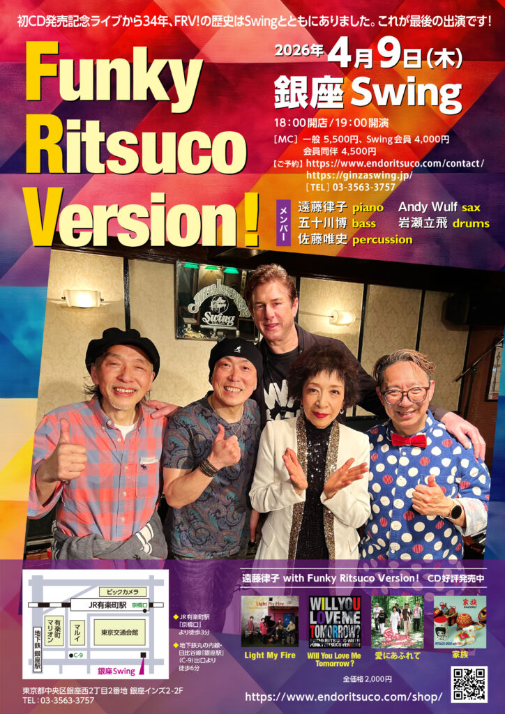 ◎4月9日銀座Swing FRV!今のお店にはこれで最後の出演です。