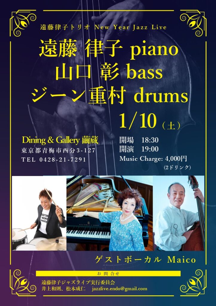 ◎1月25日吉祥寺SOMETIME,遠藤律子ピアノトリオ、遠藤律子piano 山口彰bass 藤井学drums1月1日