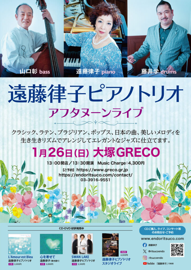 小林美智子プロデュース、遠藤律子ピアノトリオ午後ライブ。
