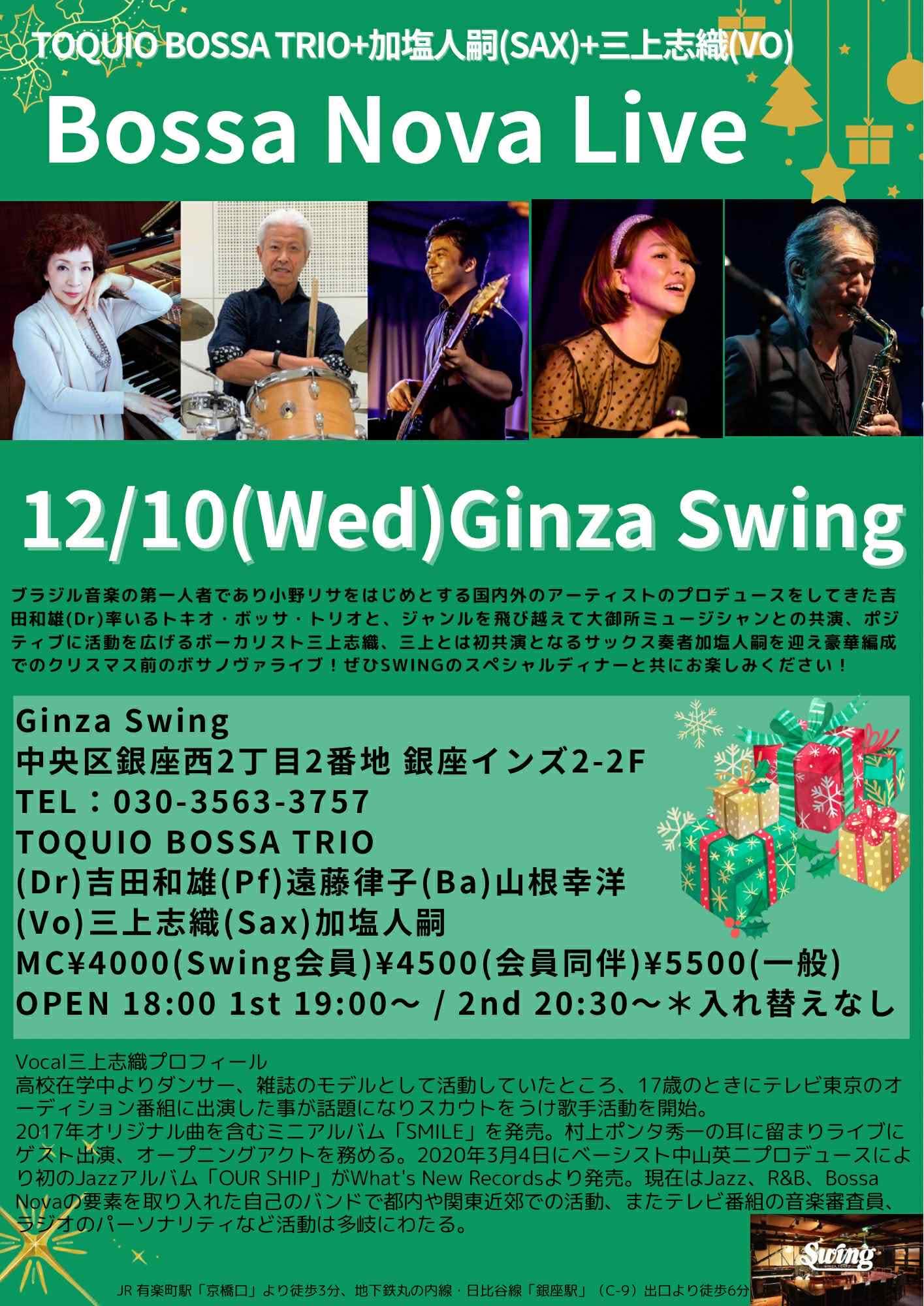 - チャーミングな歌声のヴォーカル、情熱のサックス、オシャレで熱いブラジリアンピアノトリオの豪華なサウンドのライブです。